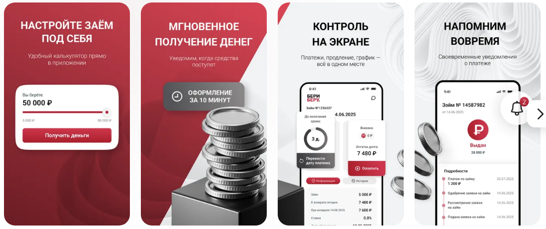 Отзывы о МФО «Бери Беру» в 2026 году преимущественно положительные, клиенты отмечают быстрое одобрение, возможность получить первый займ под 0% и отсутствие навязчивых платных услуг. Сервис работает через мобильное приложение, деньги поступают на карту, есть варианты погашения без комиссии.