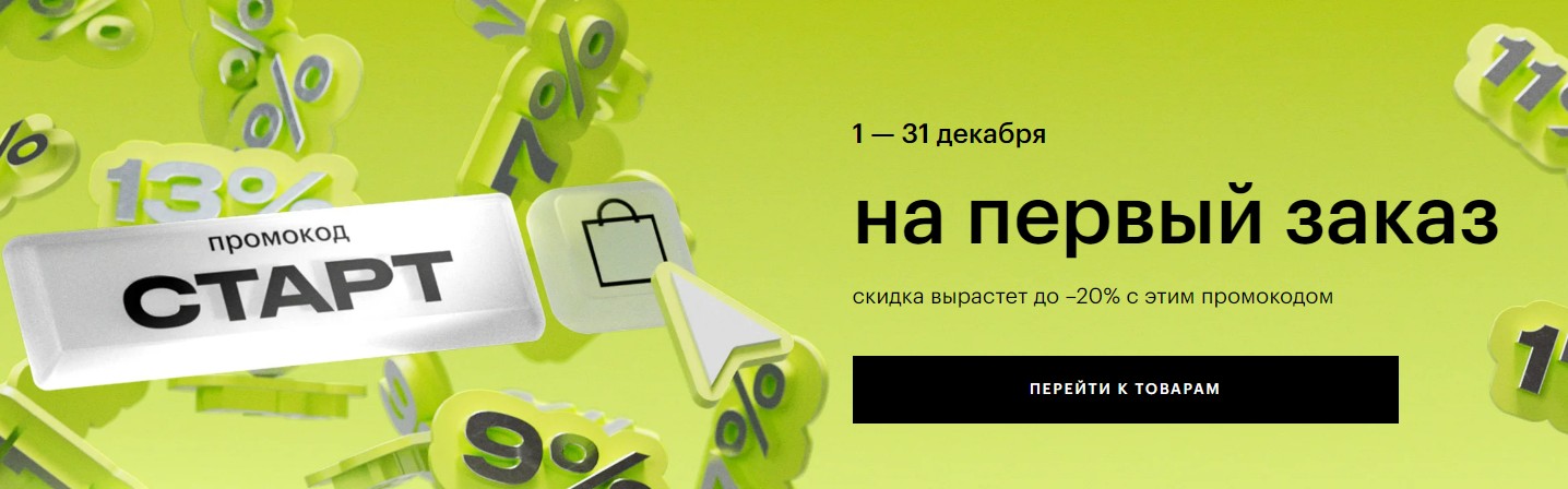 Для этого не нужны никакие промокоды, достаточно активировать акцию переходом на сайт, оформить и оплатить заказ впервые.