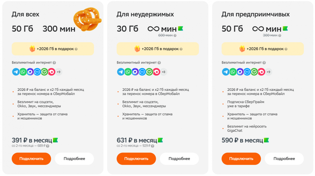 Выбрать тариф СберМобайла