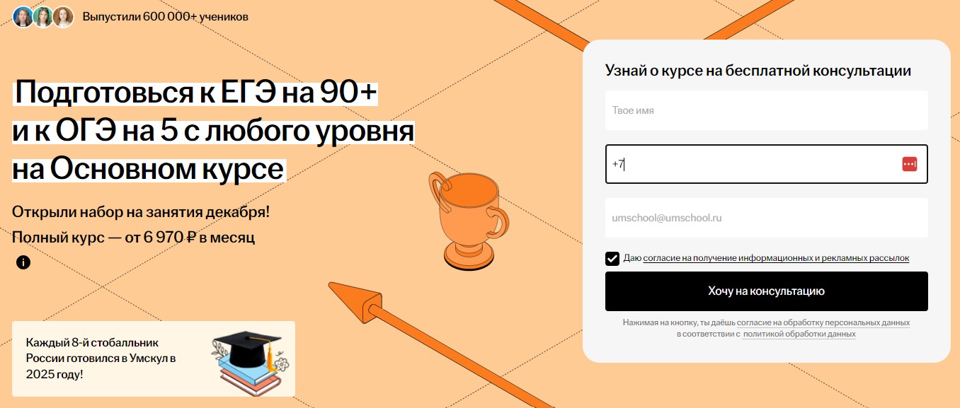 Умскул гарантирует поступление на бюджет и обязуется подготовить вас к ОГЭ и ЕГЭ.