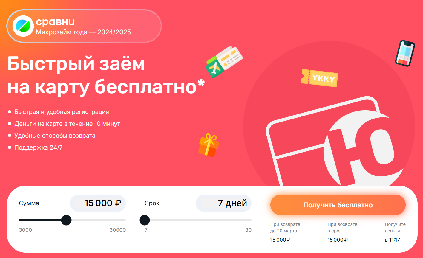 МФО «Юкки» — легальный онлайн-сервис, работающий с 2020 года под надзором ЦБ РФ, выдающий займы от 3 000 до 30 000 рублей на срок до 30 дней. Компания предлагает быстрое (около 10 минут) круглосуточное оформление, первый займ под 0%, высокий процент одобрения и возможность пролонгации.